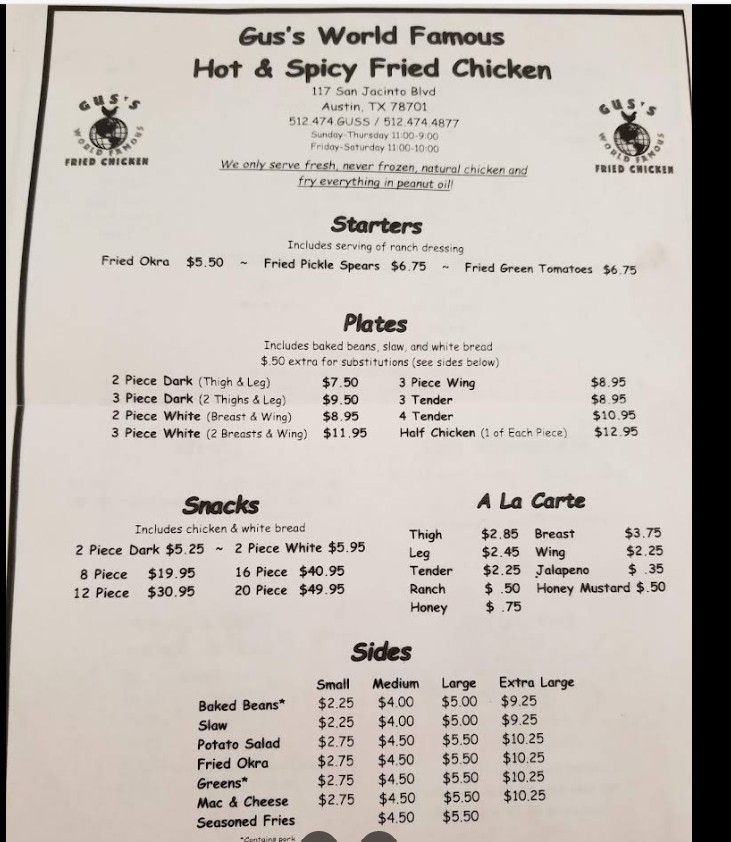 If you're craving bold Southern flavors and perfectly crispy fried chicken, the Gus's World Famous Fried Chicken Restaurant menu offers a delicious variety of classic comfort food. Known for its spicy, hand-breaded fried chicken, this popular restaurant serves flavorful combo meals, tender plates, signature sides, sandwiches, family buckets, and sweet desserts. Whether you're dining in, ordering takeout, or planning a family meal, this complete menu guide helps you explore all available options with updated prices. Discover why Gus's World Famous Fried Chicken remains a favorite destination for authentic Southern-style chicken lovers.
